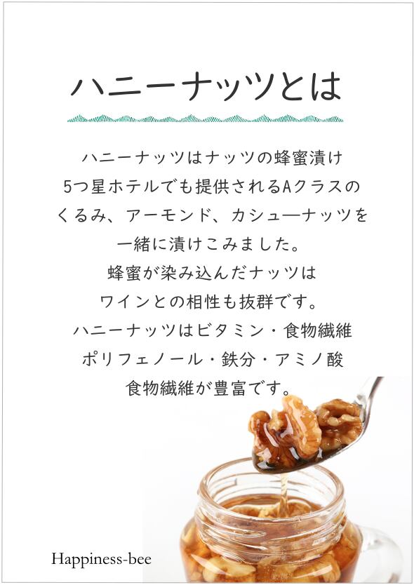 ハニーナッツはAランクの高級ナッツにたっぷりとしみ込んだ蜂蜜が贅沢なおいしさ。